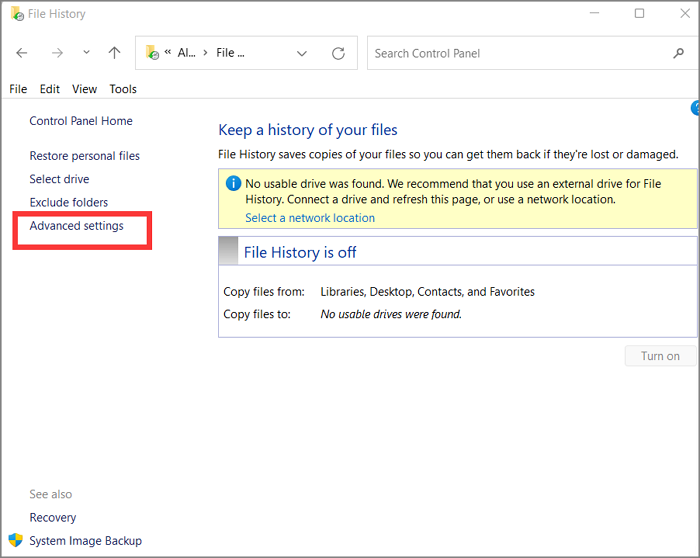 Method 3: Use File History to Create a Scheduled Backup in Windows 10