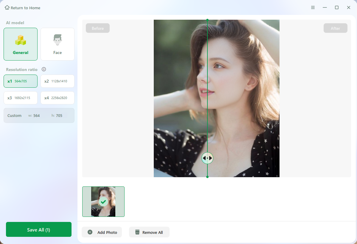 Improve image quality and resolution With cutting-edge AI technology, effortlessly upgrade your image quality in mere seconds. Utilize the Fixo photo enhancer to boost the sharpness of your photos and bring out the finest details with a touch of brilliance.