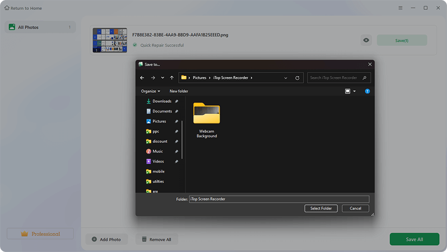 Preview the repaired videos, photos, or files, and save them to the desired location.