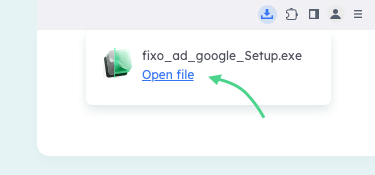 Open the fixo_Setup file from the downloads list at the bottom-left corner of this window.
