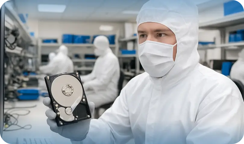 HDDs are vulnerable to mechanical failures, head crashes, and internal component issues. Our services include professional hard drive opening and recovery in a certified cleanroom environment to address severe physical damage and restore critical data.