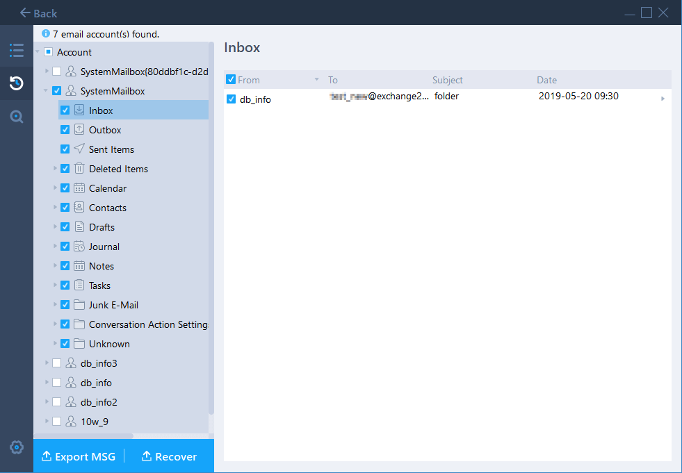 Step 4. Or you can choose "Export MSG" to export the recovered mailboxes to MSG.