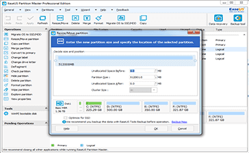 EaseUS Partition Master Pro let you create, delete, shrink, expand, split, or merge partitions on your hard drives or other storage devices.