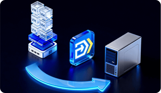 Move entire physical system settings, including data and applications, into virtual environments for testing, scaling, or backup. EaseUS ensures data integrity and compatibility, streamlining your organization’s virtualization strategy.