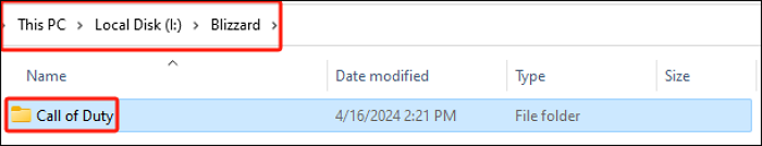 Step 3. Now, you will see the Call of Duty (Warzone) file location. Right-click on the Call of Duty folder and select "Cut."