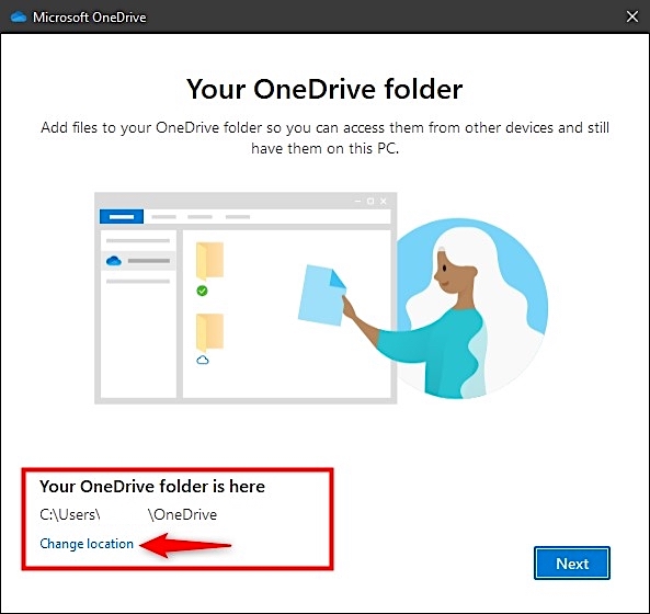 Step 4: This is the primary step to successfully changing the location of OneDrive. Before going any further, you will be asked to select the location of OneDrive, click "Change Location," choose the folder where you moved the OneDrive folder, and hit "Use This Folder."