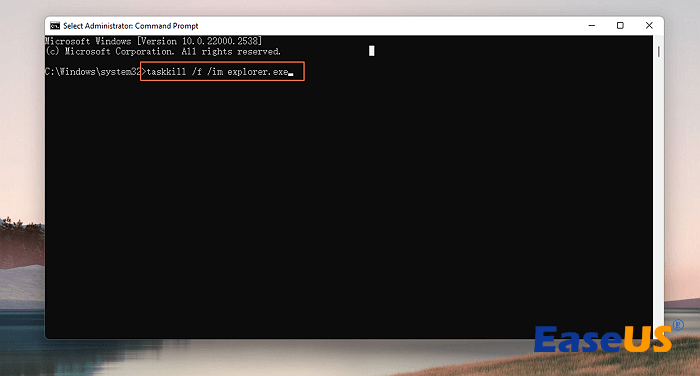 Step 2. Type taskkill /f /im explorer.exe command, then tap the "Enter" key.