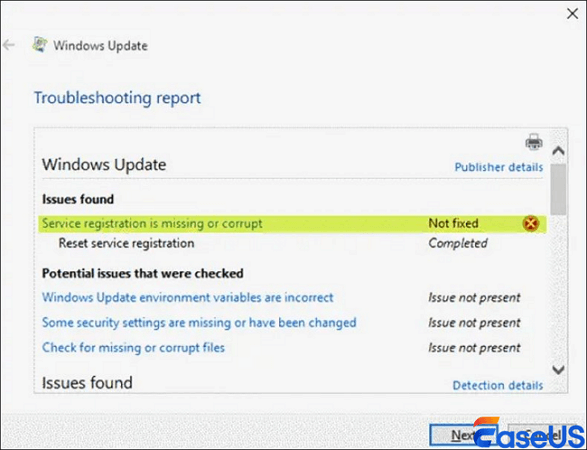 To sum up, this article has outlined five remedies for the problem of missing or corrupting Windows update service registration on Windows 7/8/10. If you encounter the issue, give these solutions a shot. Moreover, if you lose any data, utilize EaseUS Data Recovery Wizard for recovery measures.