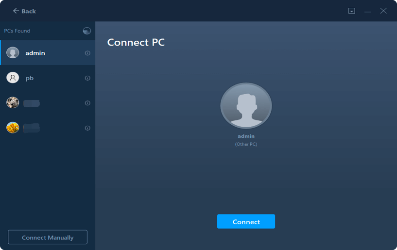 Install and open EaseUS Todo PCTrans on both your PCs . Select "PC to PC" to transfer files, applications, and user account from one to another directly.