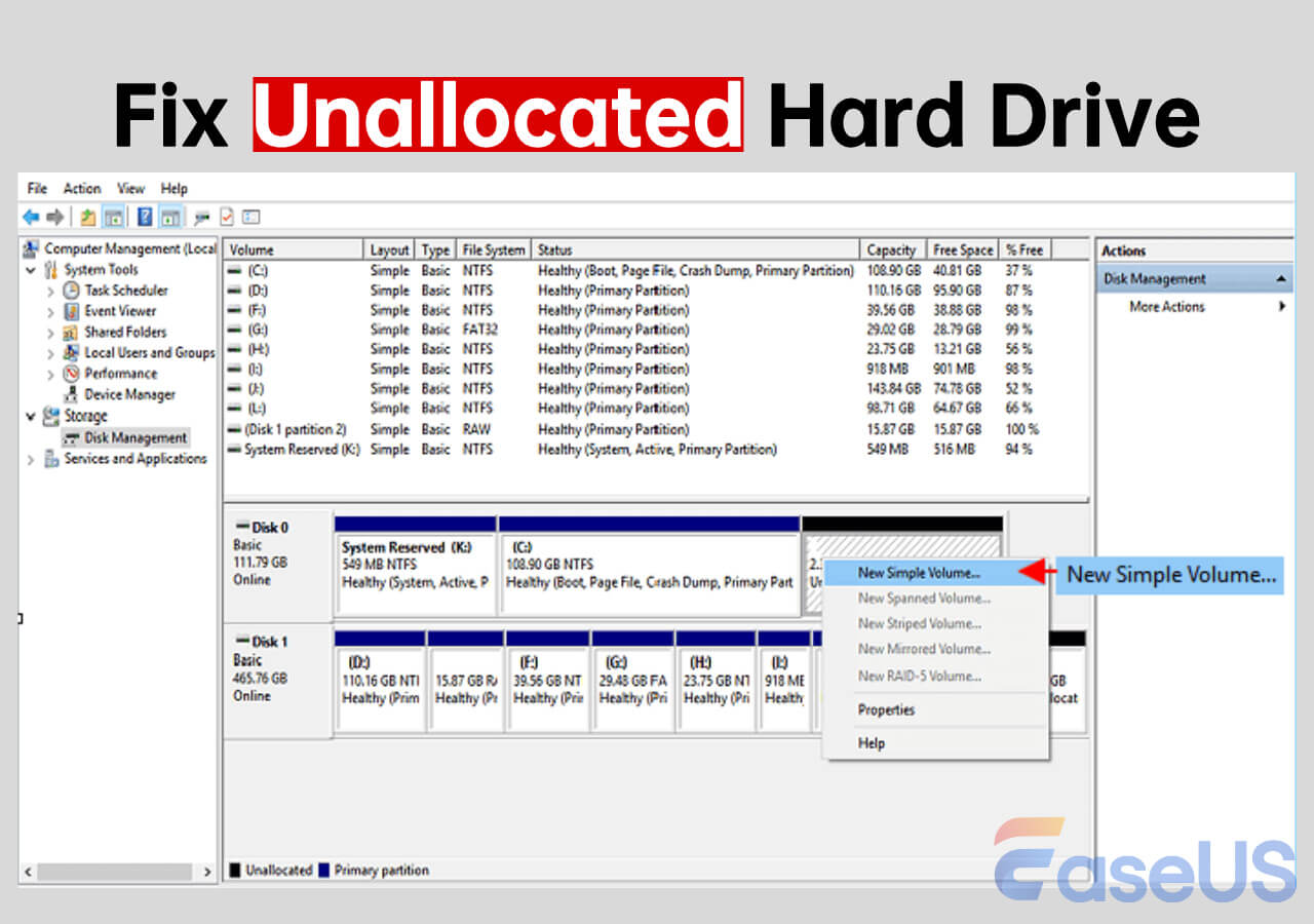 Fix Unallocated Hard Drive Without Losing Data Windows 10/11