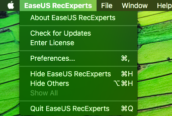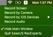 EaseUS RecExperts menu includes Upgrade, Enter license, Preferences, Hide, or Quit RecExperts.