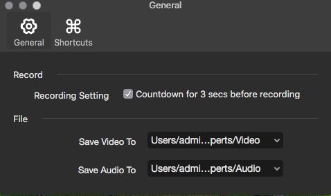 You can set the target place for saving the recorded video and audio on Preferences settings.