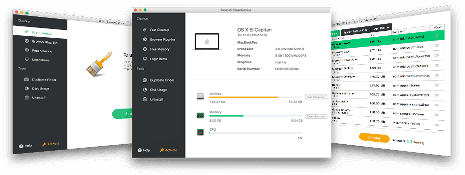 EaseUS CleanGenius for Mac is fully compatible with macOS 10.13 (High Sierra), macOS 10.12 (Sierra), Mac OS X 10.11, 10.10, 10.9, 10.8, 10.7.
