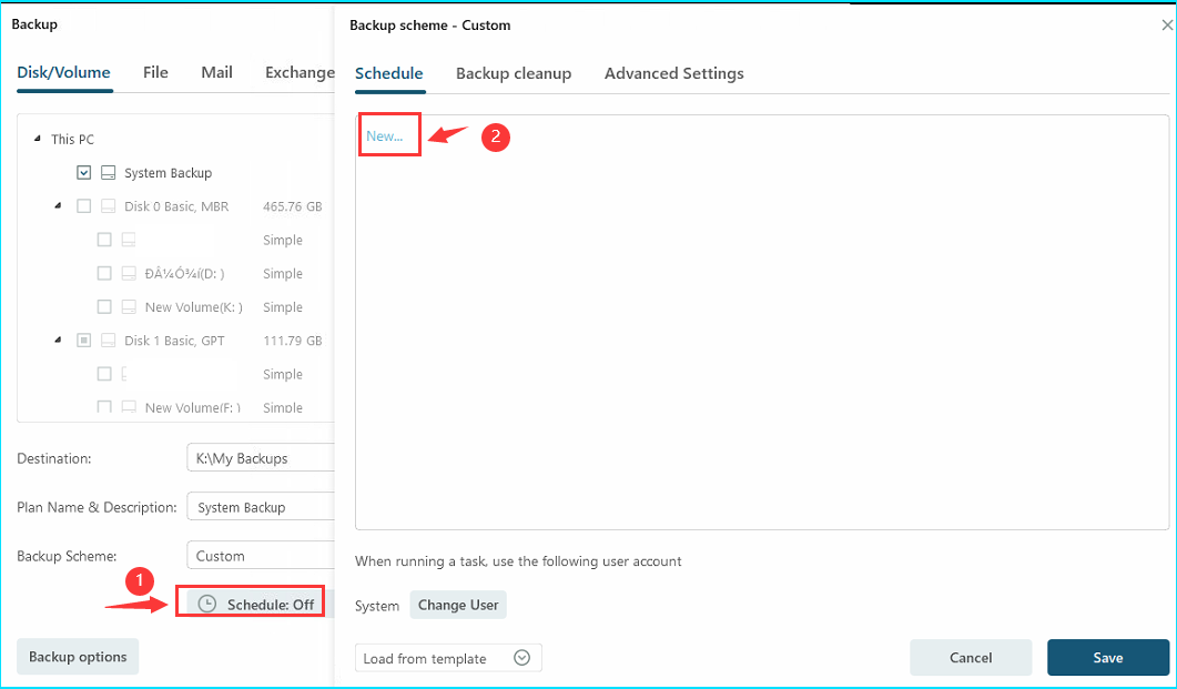 - You can choose to create a one-time backup or set up a backup schedule.