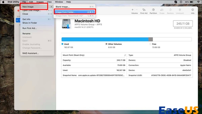 Step 2. Within Disk Utility, choose "File" and hover over "New Image."