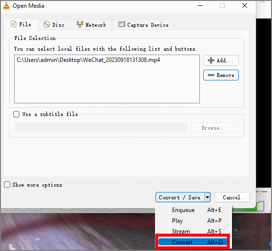 To see if this video playing error persists, you can try converting your video format to other formats that Windows Media Player supports. Use the VLC media player for help and do like this: