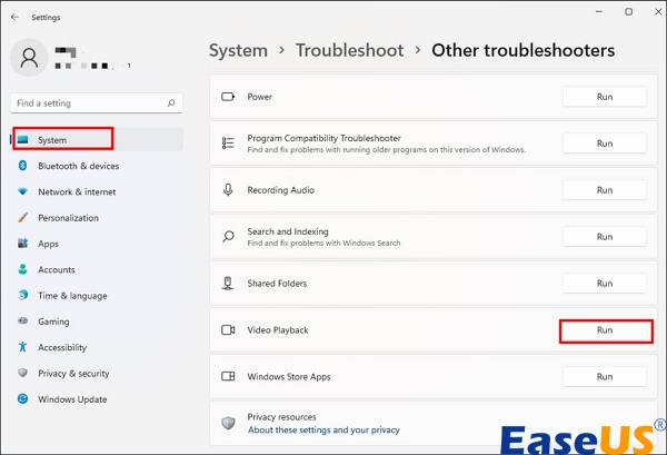 Running the built-in feature of Windows Troubleshooter is also workable. You can fix video playback by following the detailed steps here: